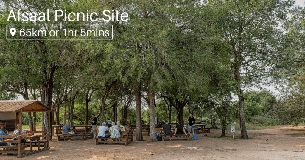 Positioned along the Mthlowa River, under the shade of tall trees, is the popular picnic site Afsaal. A collection of neat tables in the cool shade and neat bathroom facilities make this spot a favourite to break up a self-drive through the Kruger and enjoy a hearty breakfast or light lunch. Visitors can pack their own picnic basket of goodies, rent a gas braai or order a bite to eat from the kiosk onsite (we hear the pancakes are delicious!). The area surrounding Afsaal is home to a resident wild dog pack, while a number of bird species have been spotted when relaxing for a meal.